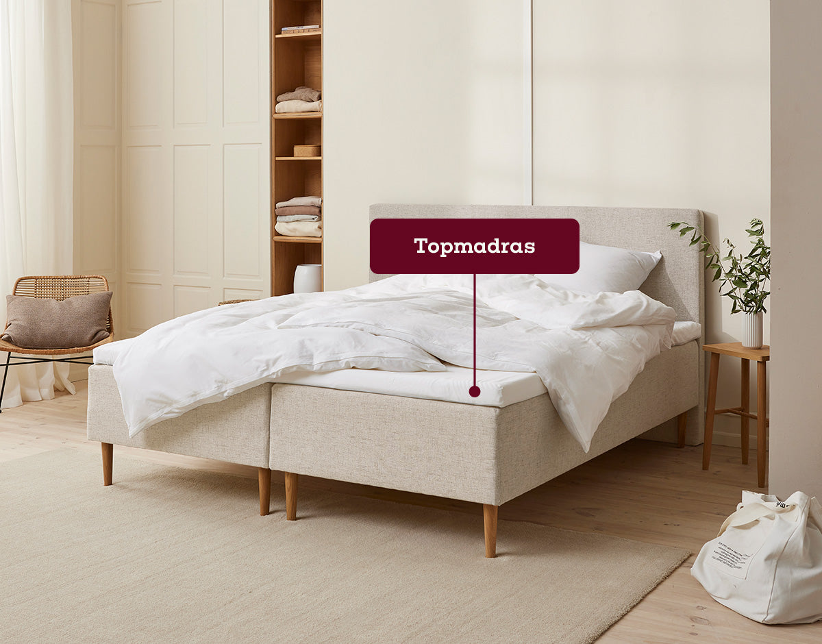 En god topmadras er afgørende for, om du sover godt. Det er nemlig den madras, som kroppen ligger tættest på om natten. Denne er akkurat dét med sin 60 mm høje kerne i skum, der hele tiden former sig efter kroppens tryk og varme og sit bløde Tencel-cover, der er utrolig fugtabsorberende.