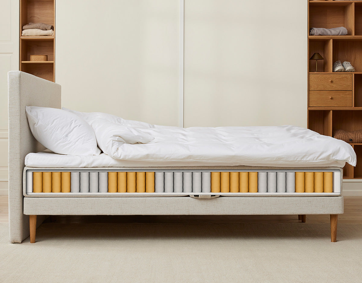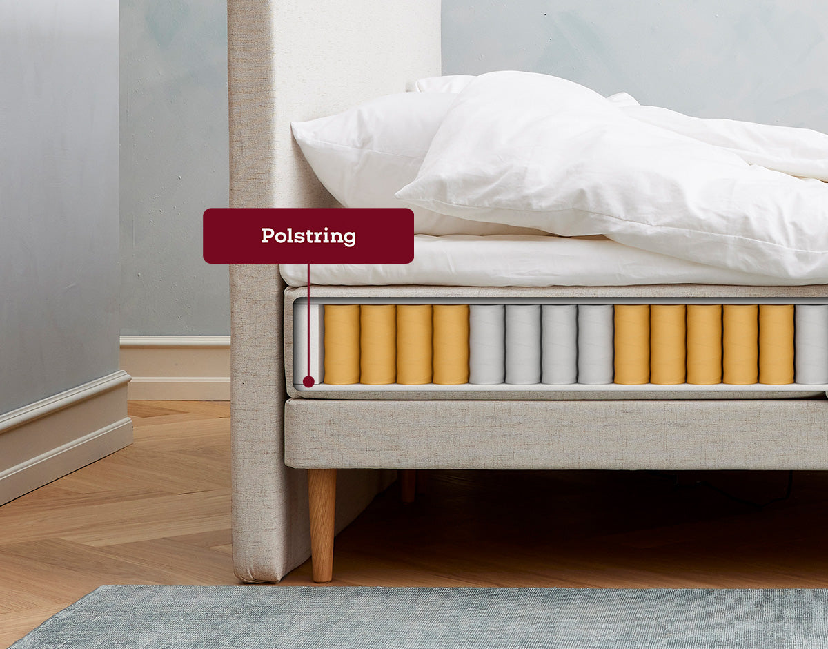 Springmadrassen er en altafgørende madras, da det er den, der har størst indflydelse på den komfort, din krop bliver mødt med, når du ligger i sengen. Springmadrassens syv komfortzoner er omkranset af en 25 mm polstring i komfortskum, der er kendetegnet for sin elasticitet og langtidsholdbarhed.